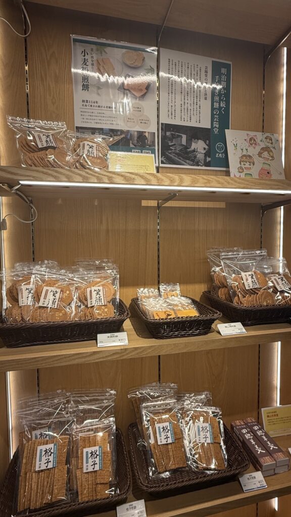 芸陽堂の煎餅も地元のお菓子としてご紹介いただいています。