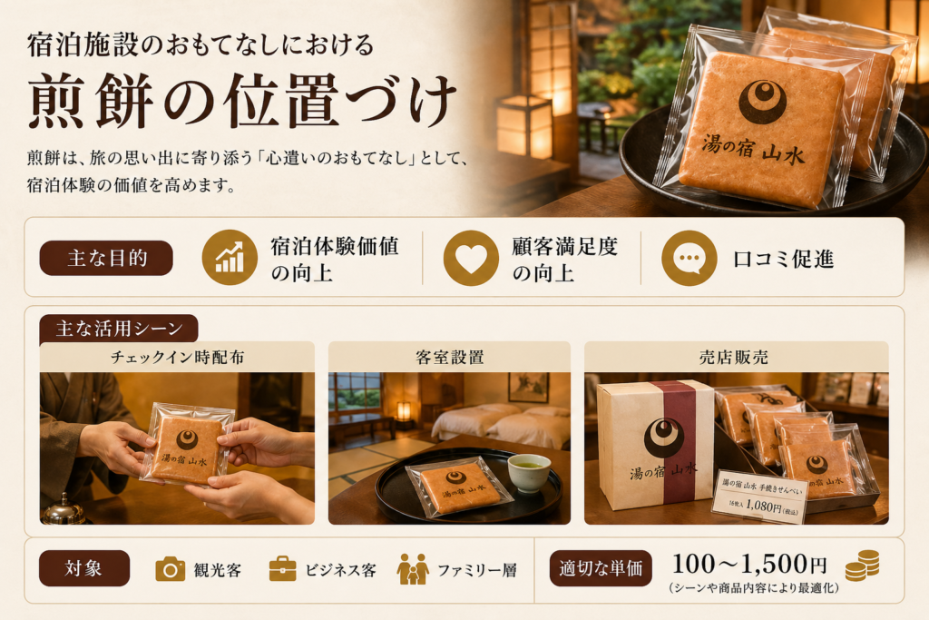 宿泊施設のおもてなしとして煎餅を検討する旅館・ホテル担当者向けに、