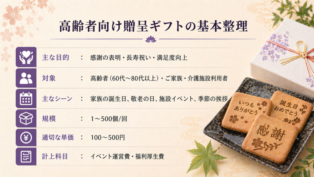 - 主な目的:感謝の表明・長寿祝い・満足度向上