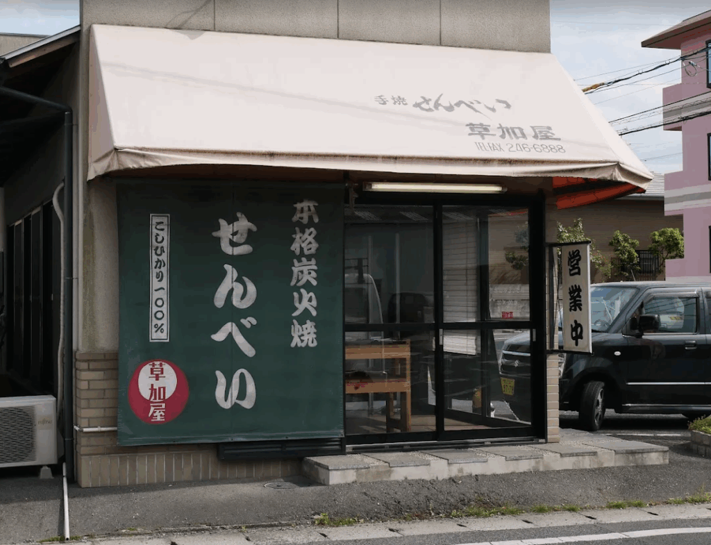 草加屋は、1999年の創業以来、“昔ながらの煎餅づくり”をまっすぐに守り続けてきた炭火の手焼せんべいです。